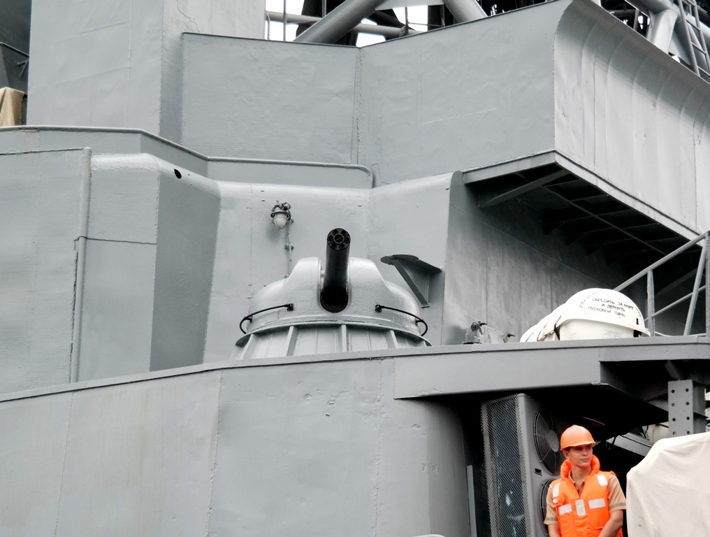 | Trong tác chiến phòng không, chiến hạm được trang bị 2 bệ pháo tên lửa Kashtan và 4 bệ pháo 6 nòng AK-630. |