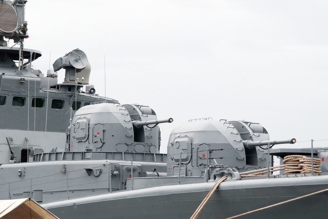 | Bên cạnh vũ khí chống ngầm, trên tàu còn có 2 bệ pháo AK-100 cỡ 100 mm. Bệ pháo này dùng để chống mục tiêu mặt nước ở tầm xa đến 21 km, trên không là 10 km (với máy bay) và 5 km (với tên lửa chống tàu), tốc độ bắn 50-60 phát/phút. |
