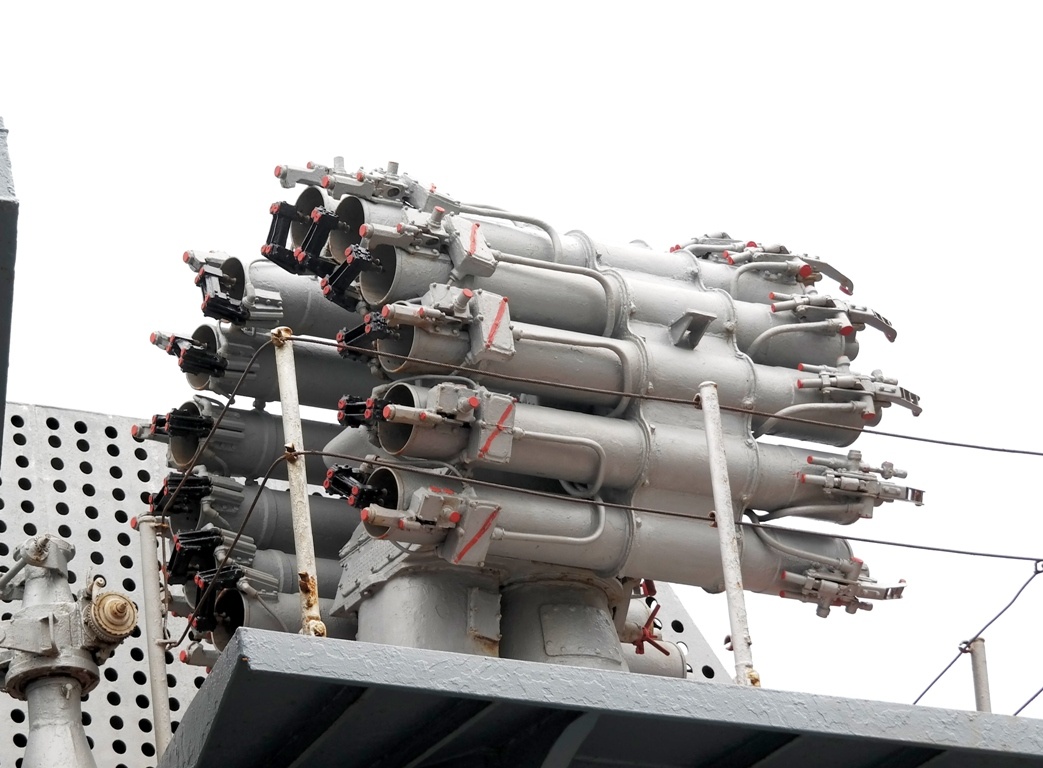 | Ngoài ra, tàu còn được trang bị 2 bệ phóng bom chống ngầm RBU-6000 cơ cấu 12 ống phóng cỡ 213 mm. |