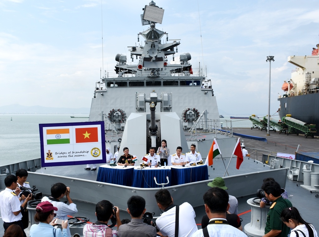 | Phát biểu tại cuộc họp báo ngay trên tàu, đại tá Kunal Singh Rajkumar - Chỉ huy chiến hạm INS Sahyadri nhấn mạnh, chuyến thăm nhằm tăng cường mối quan hệ giữa Hải quân 2 nước. Đây cũng là dịp để Hải quân Ấn Độ và Việt Nam học hỏi, chia sẻ kinh nghiệm. |