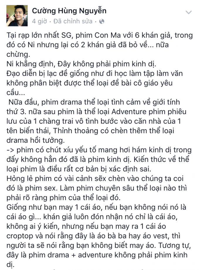 | Nhận xét của phó đạo diễn trên trang cá nhân. |