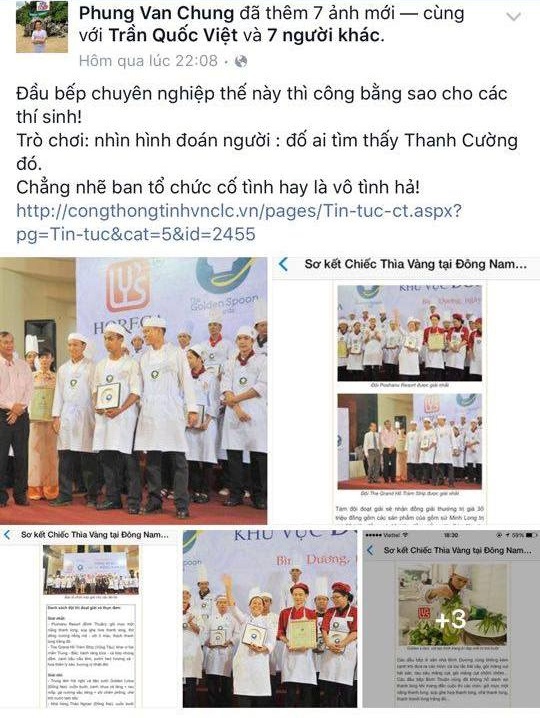 Bằng chứng được đưa ra là trong một bài viết về cuộc thi nấu ăn mang tên Chiếc thìa vàng năm 2014, có hình ảnh một thành viên của đội nấu ăn thuộc resort Palm Song Be Golf - đội được giải nhì chung cuộc - được cho là rất giống Thanh Cường.