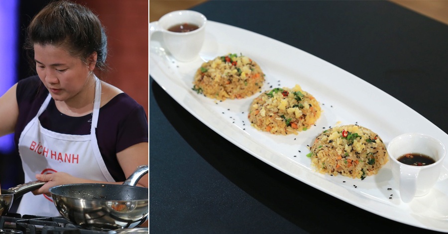 | Căng thẳng bước vào thử thách, Bích Hạnh thận trọng sơ chế các nguyên liệu, đặc biệt là trứng kiến để thực hiện món Cơm chiên trứng kiến. Dù vậy, sự khéo léo cùng nỗ lực đã giúp Bích Hạnh có được món ăn ngon miệng. “Mỗi lần nhai, trứng kiến bể ra có độ mặn của nó và độ giòn của hạt cơm. Rất là thơm. Em phối hợp các nguyên liệu rất tốt. Vị rất hài hoà, phải nói đúng là tròn vị. Rất cám ơn em đã cho chúng tôi một món ăn rất là ngon” - giám khảo Tuấn Hải dành lời khen cho Bích Hạnh. Phạm Tuyết và Bích Hạnh được đánh giá là 2 thí sinh có món ăn ngon nhất và sẽ là 2 đội trưởng ở vòng thi tiếp theo. |
