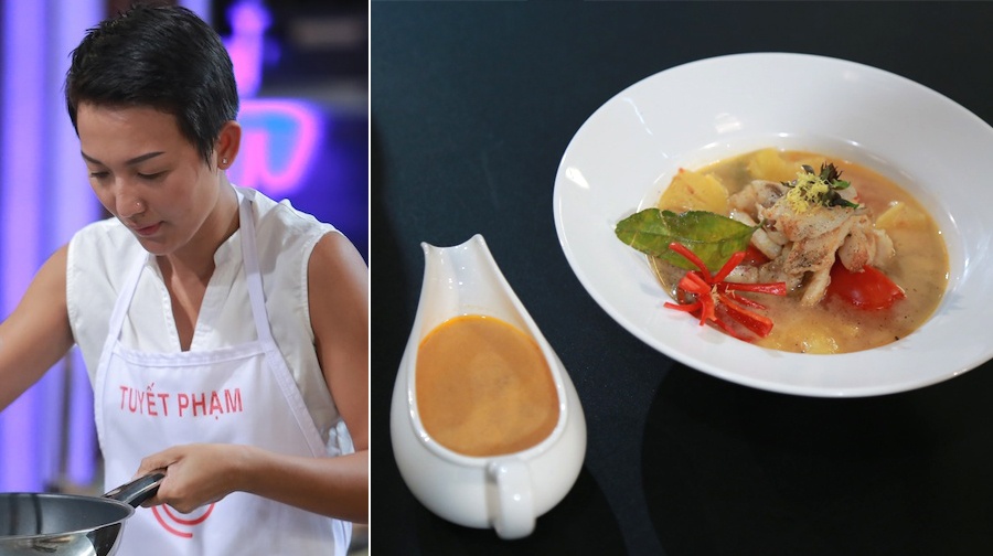 | Nhận đề bài là cá chìa vôi, Phạm Tuyết đã sáng tạo dựa trên món tom yum nổi tiếng của Thái Lan. Trong khi Quốc Việt cho rằng “không khác gì món canh cá chua bình thường”, ban giám khảo lại bị thuyết phục bởi hương vị, kỹ năng nấu ăn cũng như giải quyết vấn đề của Phạm Tuyết. Cô hướng dẫn viên du lịch hào hứng khi kế hoạch của Quốc Việt hoàn toàn thất bại. |