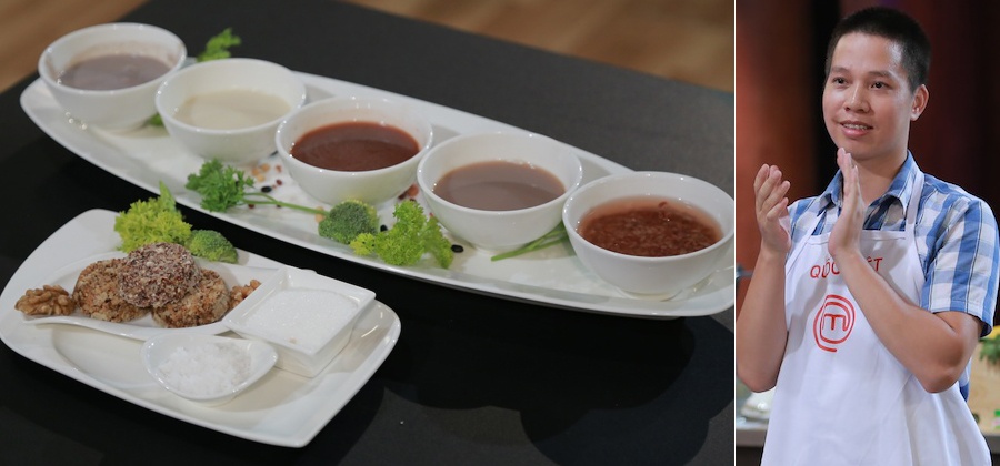 | Các giám khảo nhận xét đây là một phần thi thách thức bởi những nguyên liệu này rất khó nấu ngon. Với cách chọn làm bánh ngũ cốc từ gạo lứt, hạt óc chó và 5 loại nước uống đi kèm, Quốc Việt được ca ngợi về sự sáng tạo, kỹ năng. Anh là người chiến thắng phần thi Chiếc hộp bí mật. |