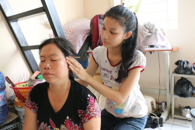 Hai chị của Huyền lần lượt từ Đồng Nai lên Sài Gòn sống với người cô, sau này vừa đi làm vừa học tại chức. “Thấy để mẹ ở quê xa xôi nên hai chị mới bàn cho cả nhà chuyển lên đây ở trọ, tiện lo cho bệnh của mẹ” - Huyền nói.