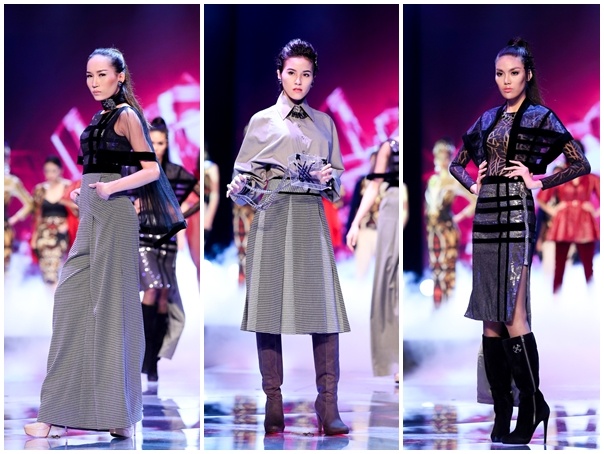 | Giải vàng Siêu mẫu Việt Nam 2011 tái xuất màn trình diễn BST Rét đầu đông của NTK Hà Duy tại chương trình Ngôi sao thiết kế Việt Nam 2013. |