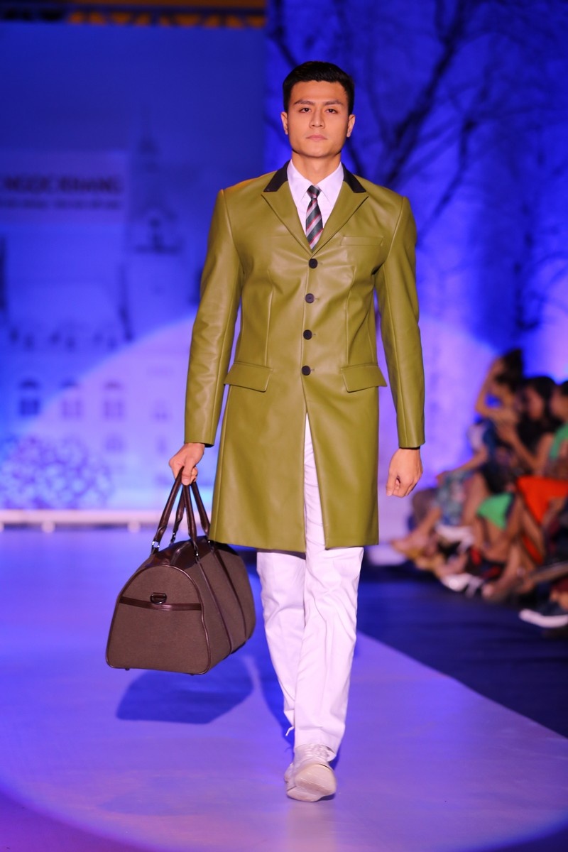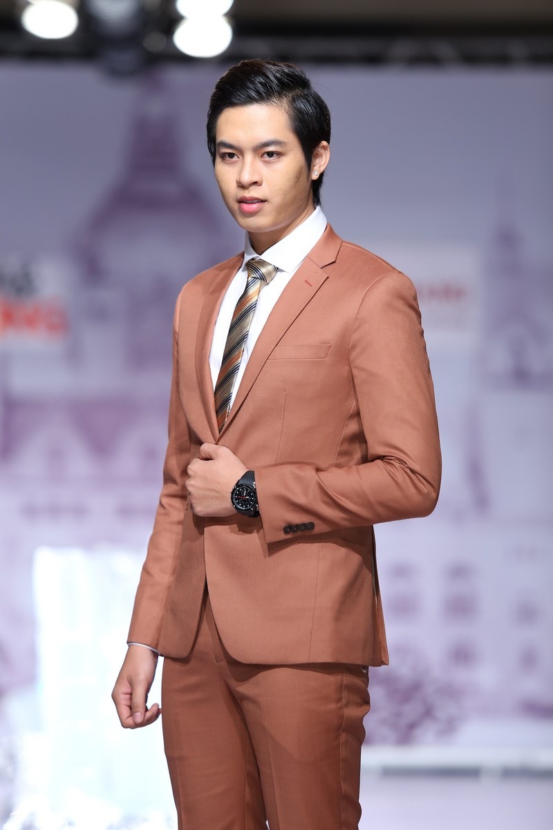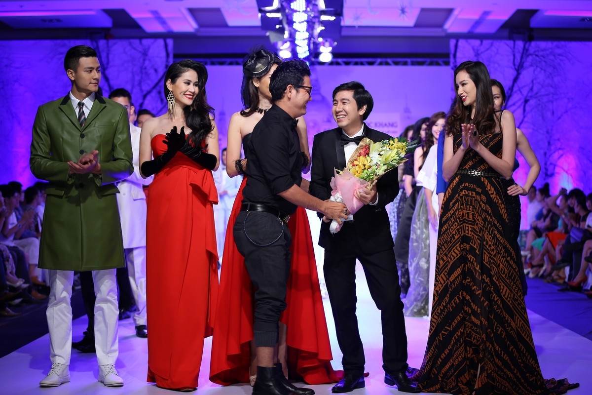 Ngoài Thân Thúy Hà, người mẫu Vĩnh Thụy cũng đảm nhận vai trò người mẫu trình diễn, anh xuất hiện ở phút cuối cùng stylist Đăng Tuấn, chủ thương hiệu thời trang.
