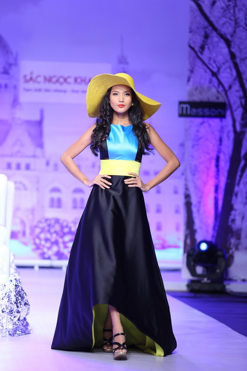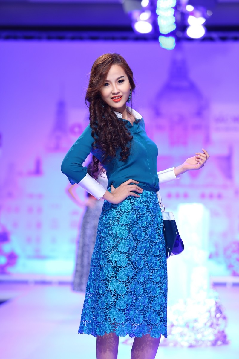 Đảm nhận vai trò người mẫu trình diễn BST của Massoni, gải vàng ''Siêu mẫu Việt Nam 2011'' để lộ vòng eo kém thon gọn khi cô chuyển dáng nhìn nghiêng.