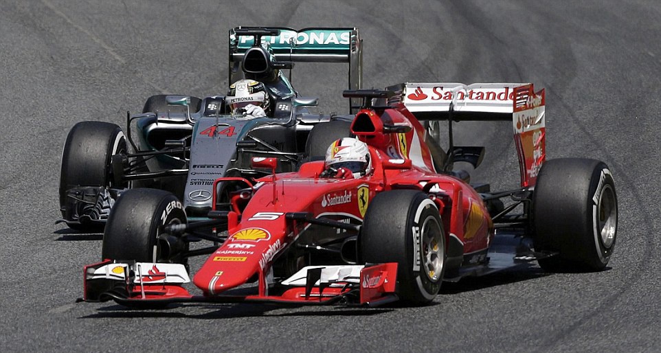 | Do bị kẹt lại phía sau chiếc xe của Vettel, Hamilton đã không thể tăng tốc bám đuổi Rosberg sau vạch xuất phát. |