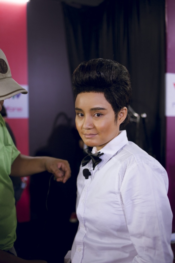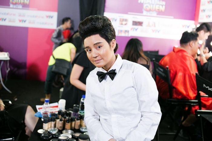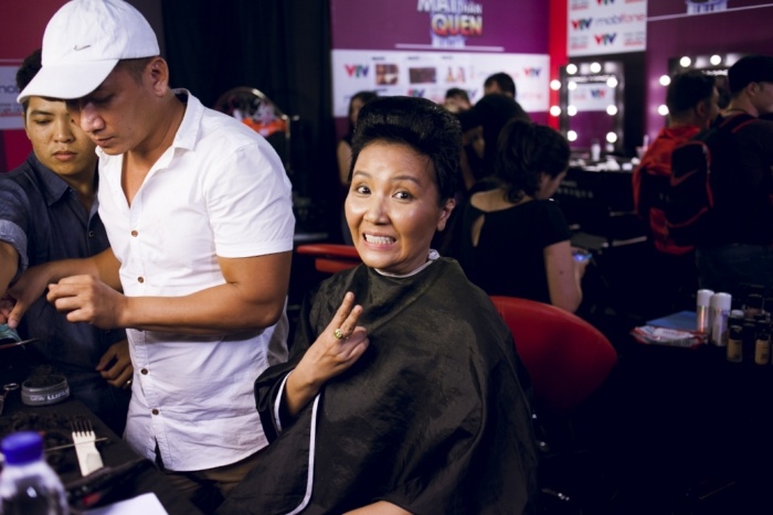 | Vy Oanh hầu như không nở nụ cười khi có mặt trong khu vực trang điểm. |