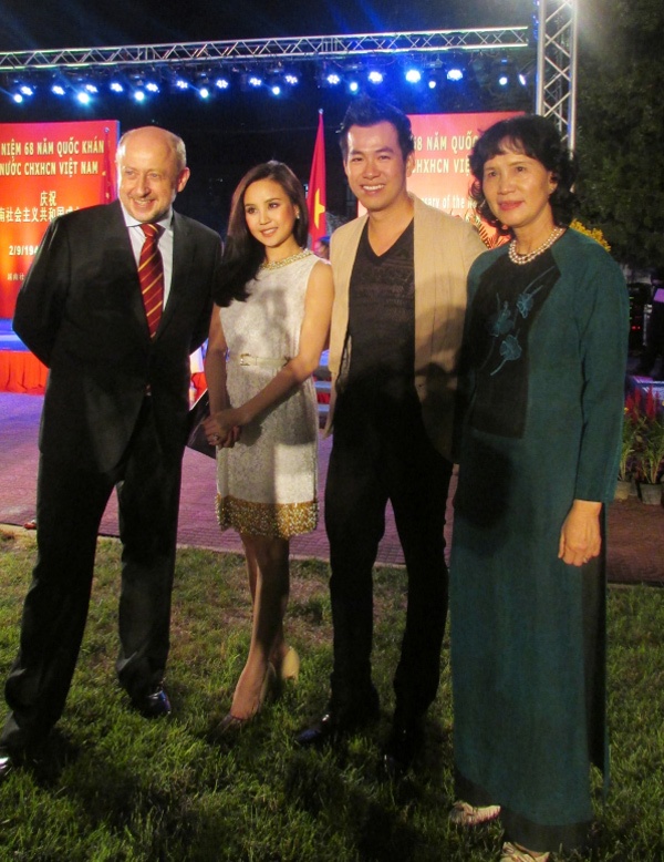 Hai ca sĩ cho biết, sân khấu được dựng ngay tại tòa đại sứ Việt Nam tại Bắc Kinh. Sau nhiều năm tổ chức, đây là lần đầu tiên có sự tham dự của Bộ trưởng Ngoại giao Nguyễn Bình Minh cùng Bô trưởng Ngoại giao Trung Quốc và Lào . Ngoài ra có sự tham dự của đại sứ Việt Nam tại Trung Quốc Trần Ngọc Thơ và phu nhân Tạ Anh Đào cùng các ban ngành, doanh nhân Việt Nam tại Trung Quốc tham dự mừng Quốc khánh Việt Nam.