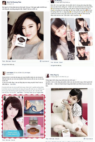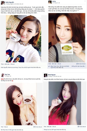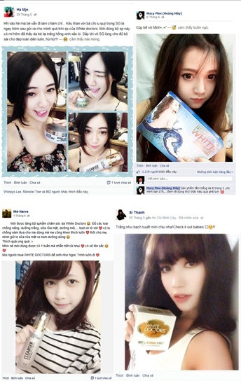 Nhiều hot girl đã tin dùng và yêu thích White Doctors như Sam, Linh Napie, Lily Luta, Kelly Nguyễn, Vân Navys Hous, Yuu Quỳnh Nhi, Hồng Vân, Trịnh Hồng Quế, An Phương, Ribi Sachi, Hương Mì Gói, Sĩ Thanh, Chi Pu, Huyền Anh (Bà Tưng), Kiều Phạm, Emily Nguyễn, Mờ Naive, Trương Quỳnh Anh, Hà Min, Á Hân Lâm, Hoàng Mây, Elly Trần, Đàm Phương Linh…