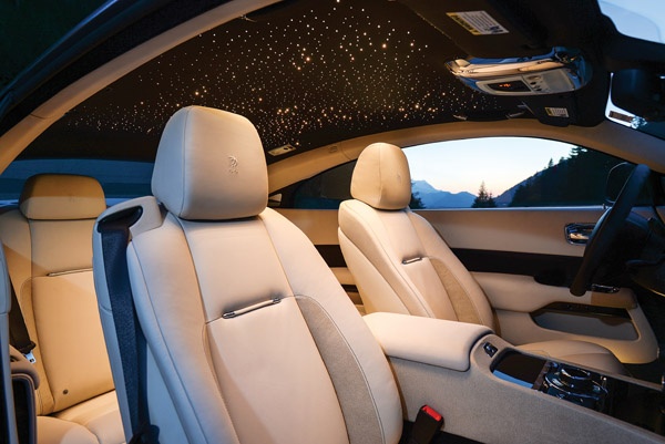 Với sức mạnh đó, Wraith cũng là chiếc Rolls-Royce nhanh nhất từ trước đến nay, với thời gian tăng tốc 0-100km/h chỉ trong 4,6 giây. Trần xe nền sẫm với hơn 1.300 chiếc đèn LED nhỏ li ti được sắp đặt ngẫu nhiên trông giống như một bầu trời sao lung linh cho dù môi trường xunh quanh là ngày hay đêm. Tiếp đó, tấm gỗ nguyên khối ốp trên mặt trong của cánh cửa cũng là tấm ốp gỗ lớn nhất trên thế giới được sử dụng để trang trí trên một chiếc xe hơi.