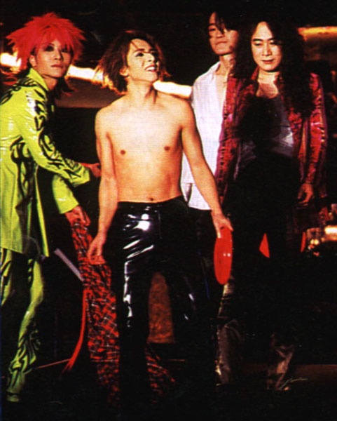 | Hình ảnh X Japan tại đêm diễn The Last Live ngày 31/12/1997. Tay guitar hide (áo xanh) tự sát chưa đầy nửa năm sau đó. |