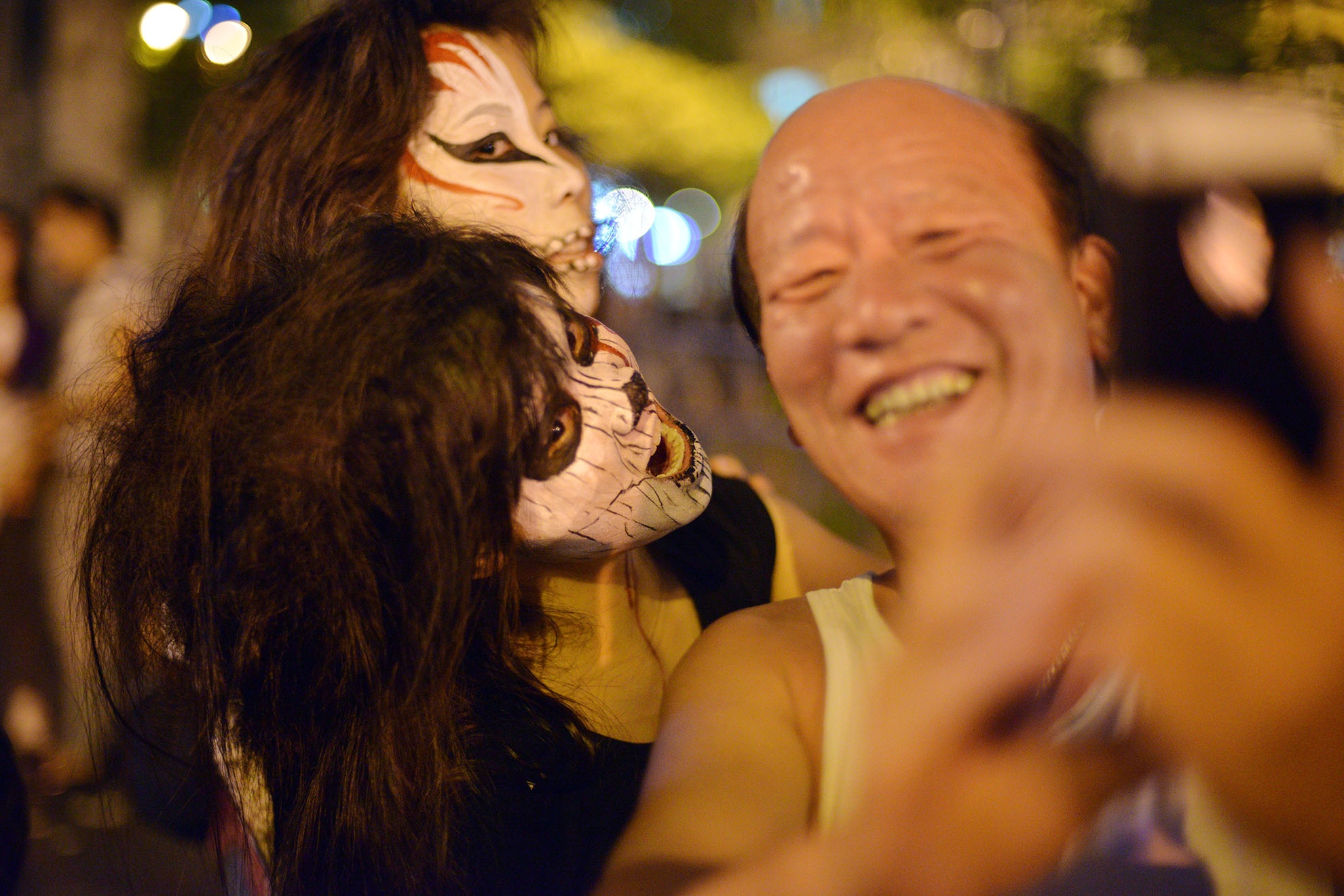 Họ hóa trang thành những xác sống vẽ máu me đầy mình, tóc xõa, mặc áo trắng đi dọa người đi đường.