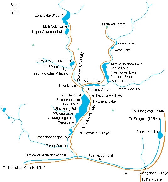 | Cửu Trại Câu được chia làm 2 nhánh giống như chữ Y |