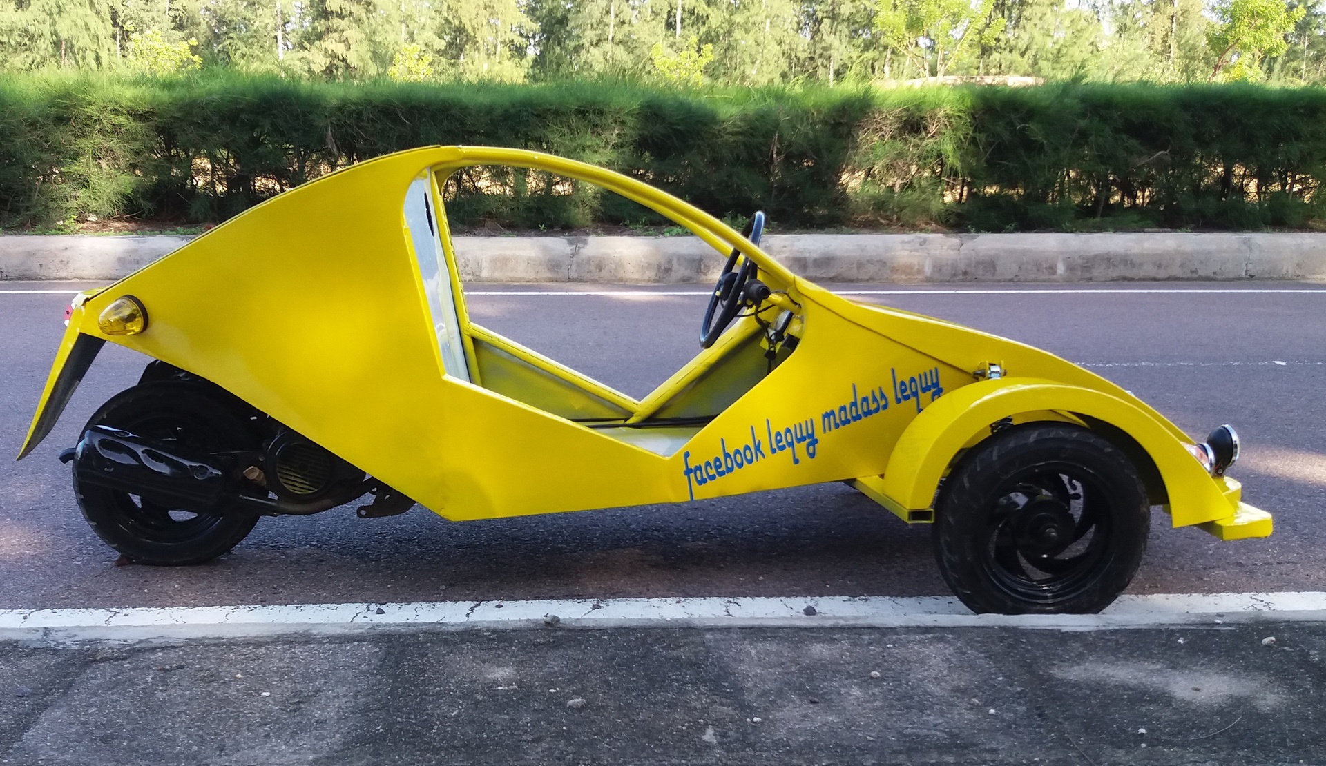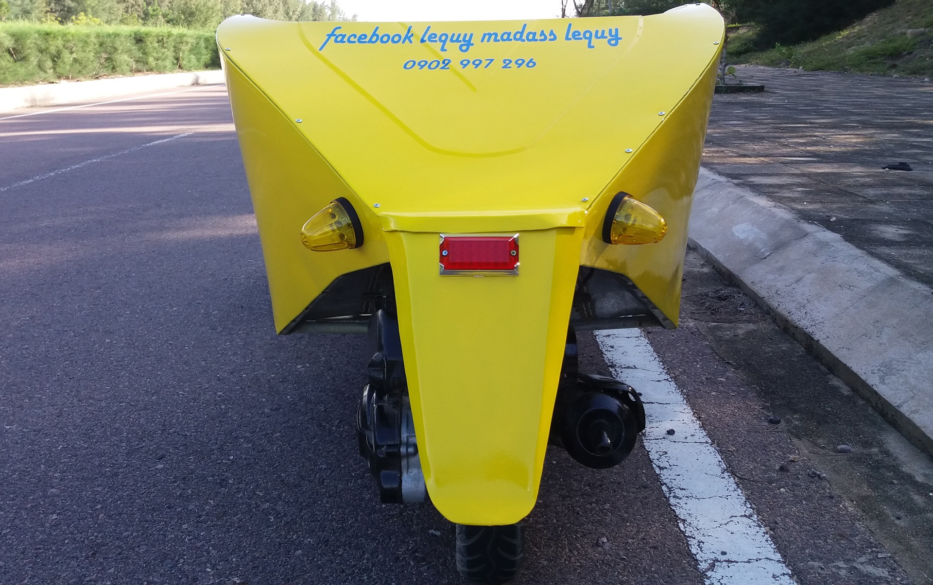 | Chiếc xe độ này thuộc sở hữu của anh Lê Quý, một người thợ tại Bình Định. Thiết kế của chiếc xe đơn giản nhưng cũng khá độc đáo. Anh Quý cho biết đây hoàn toàn là ý tưởng tự nghĩ ra. Trước đây, người thợ này cũng từng có những sản phẩm độ đáng chú ý từ xe máy. |