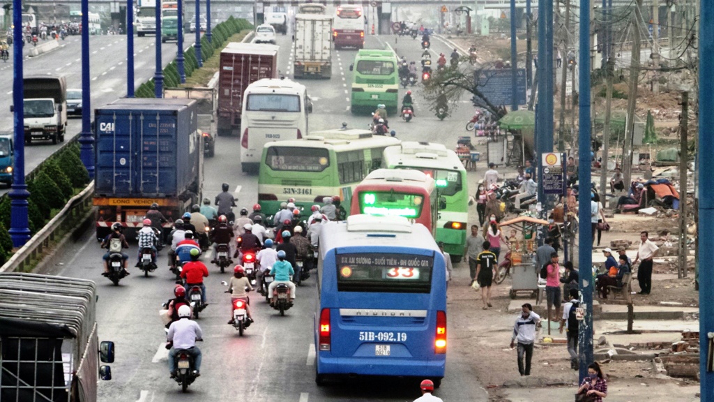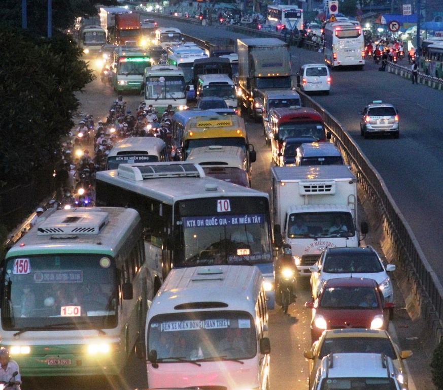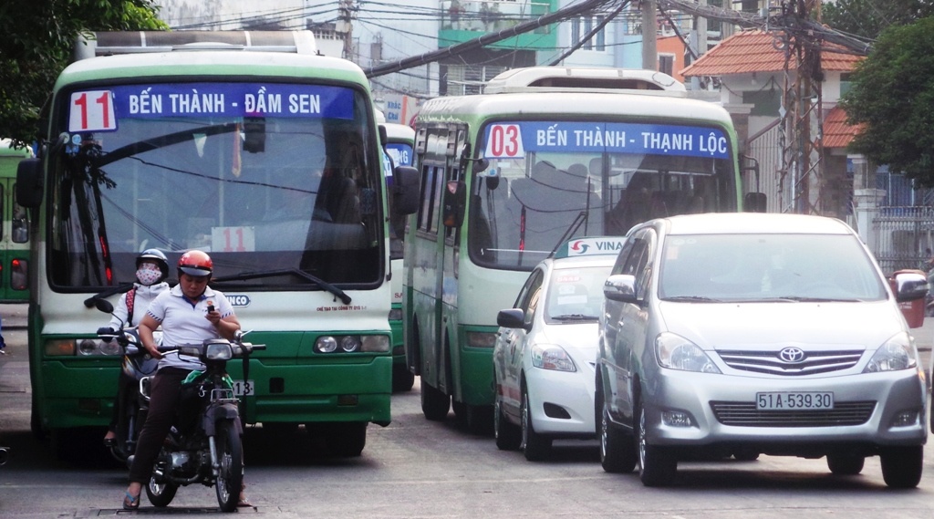 | Lượng xe buýt quá đông cũng góp phần gây nên tình trạng ùn tắc giao thông tại TP.HCM. Ảnh: Lê Quân. |