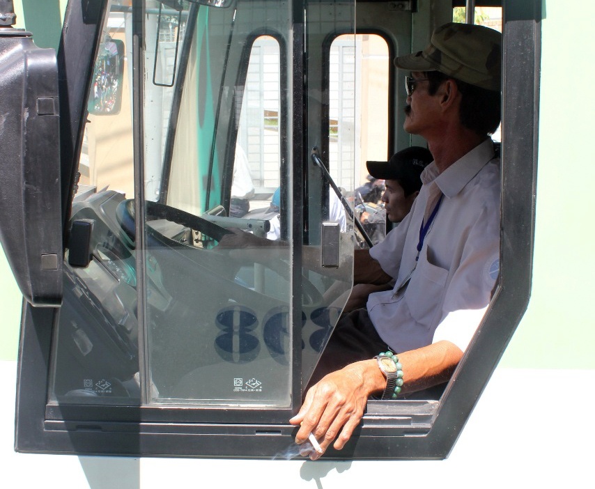 Tài xế hút thuốc lá trong khi làm việc mặc dù có quy định cấm.