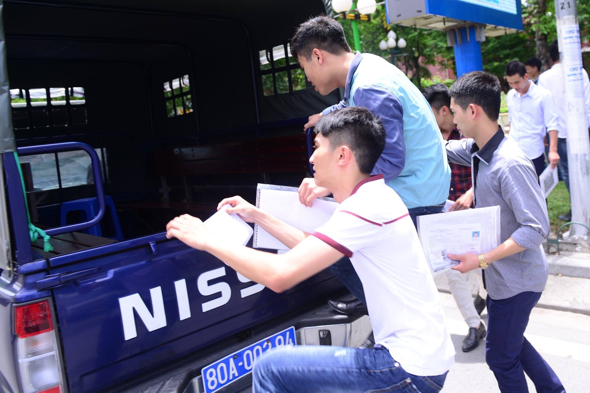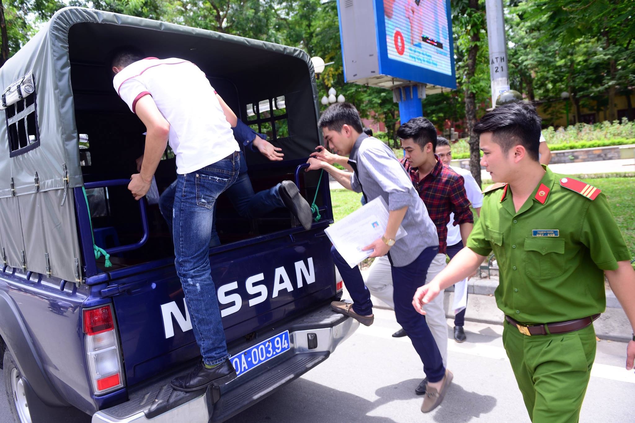 | Sau giờ thi, những thí sinh này được xe công đón về đơn vị. |