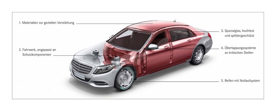 Mercedes-Maybach S600 Guard là mẫu xe đầu tiên đạt chuẩn an toàn VR10, mức cao nhất về khả năng chống chịu các cuộc tấn công vũ trang đối với một chiếc xe dân dụng. Đối với mức độ an toàn này, thân xe và cửa kính của xe phải chịu được những cuộc tấn công từ loại súng trường mạnh mẽ nhất. |