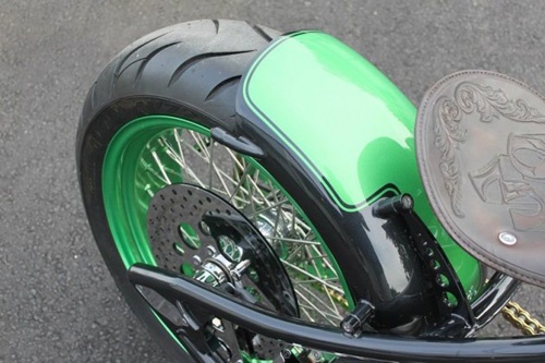 Tác phẩm này do nhóm độ Azzkikr Custom Cycle, trụ sở tại British Columbia (Mỹ), thực hiện. Phần khung xe không hề rườm rà với các chi tiết làm từ ống kim loại, cả gắp trước và sau cũng đều làm từ loại vật liệu tương tự.