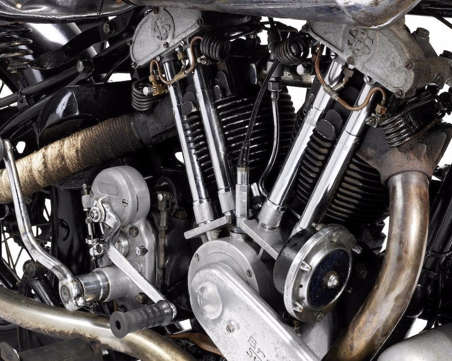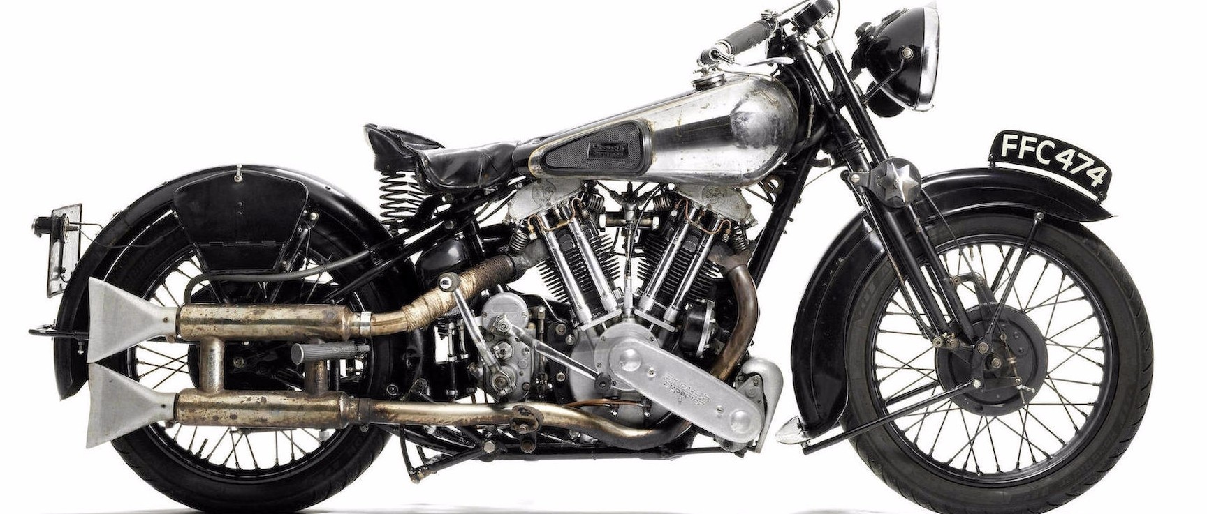 Brough Superior SS100 đời 1936 được coi là siêu môtô của thời đại, bởi nó sử dụng động cơ 1.000 cc V-twin, làm mát bằng chất lỏng và dầu, công suất cực đại 120 mã lực và 100 Nm mô-men xoắn.