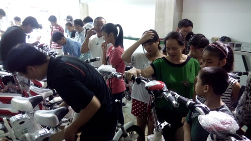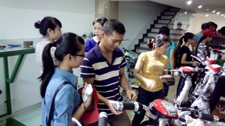 | Cửa hàng xe đạp điện HKbike luôn rất đông bạn teen đi cùng bố mẹ tới mua. |
