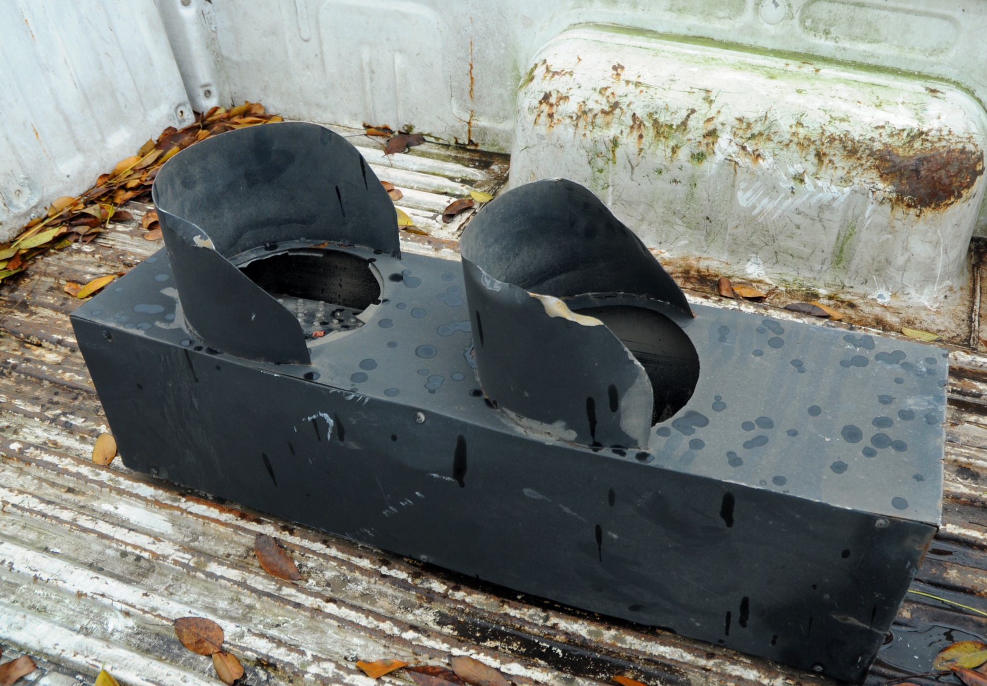 Đèn cảnh báo phân làn bị xe húc vào được để trên xe của lực lượng csgt phục vụ công tác điều tra.