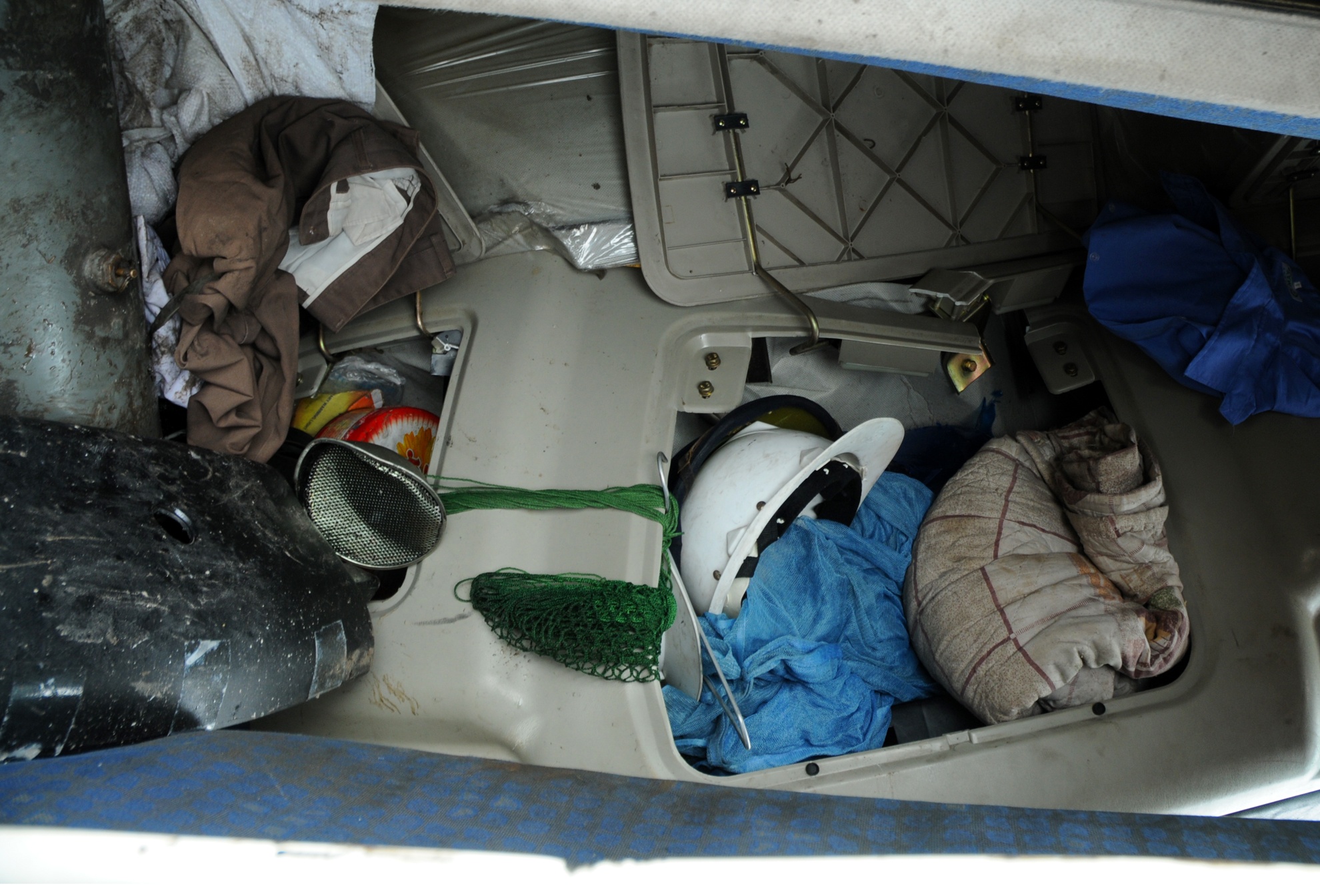 Đồ vật bị xáo trộn trong cabin. Lực lượng CSGT quận Thanh Xuân và cứu hộ 116 đã có mặt kịp thời, tìm cách cứu hộ và di chuyển xe ra khỏi khu vực đường trên cao.