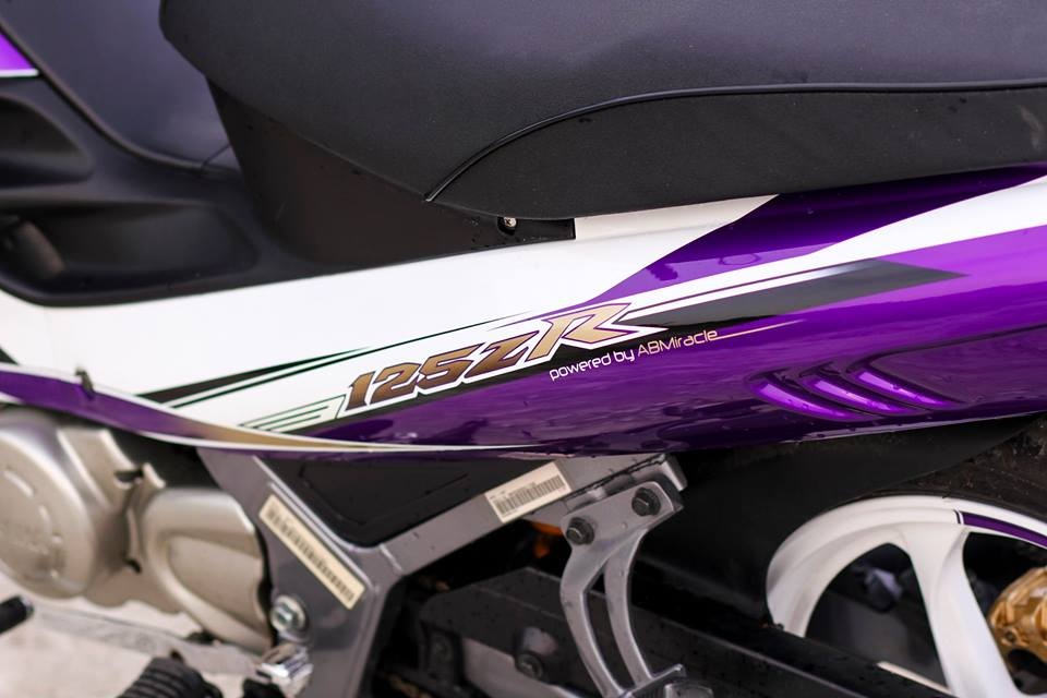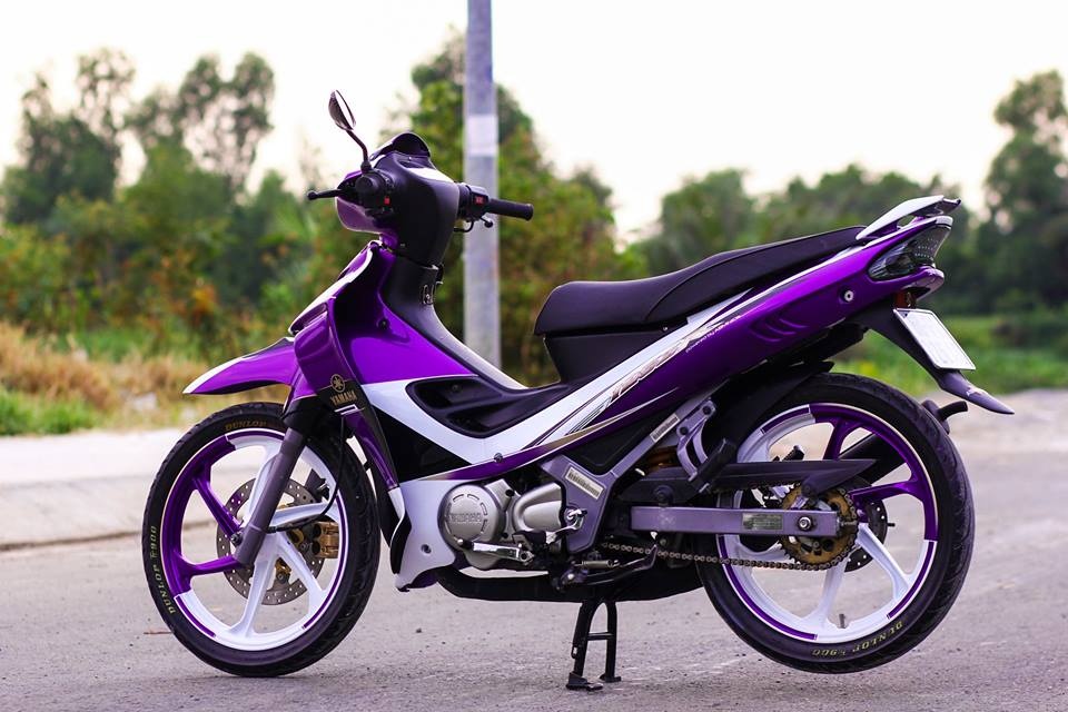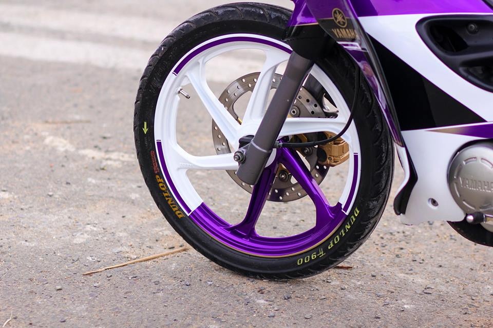| Chiếc Yamaha Z nguyên bản có màu sơn xanh GP. Chủ nhân của nó yêu thích màu tím nên quyết định sơn lại dàn áo và cặp mâm, lấy màu tím-trắng làm chủ đạo. |