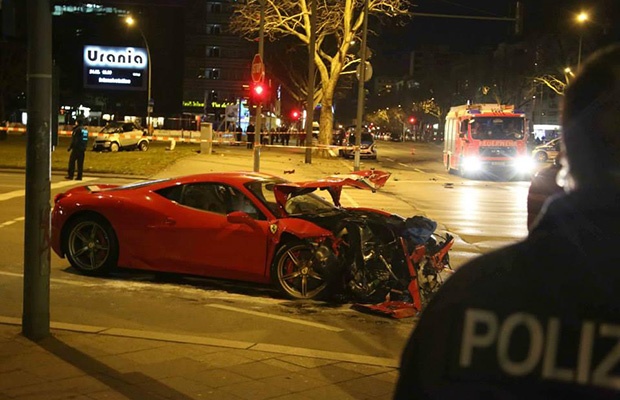 Vụ tai nạn xảy ra ở Berlin, Đức. Theo hai nhân chứng, chiếc Smart For Two vượt đèn đỏ và bị siêu xe Ferrari 458 Italia tông ngang thành xe. Tất cả người ngồi trên hai chiếc xe đều được đưa vào bệnh viện sau đó.