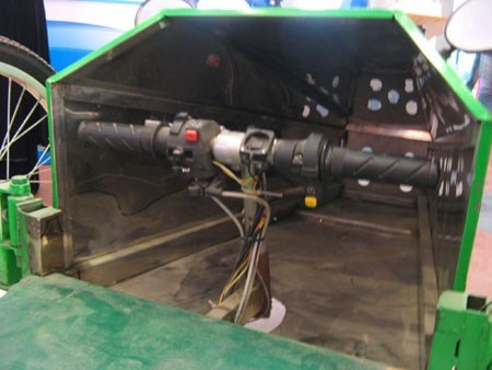 Người ngồi điều khiển chỉ cần cho hai chân duỗi thẳng theo thùng tôn về trước, dựa vào đằng sau. Xe có thể chạy tốc độ tối đa 60km/h, đằng trước có bố trí hai chiếc gương. Tuy nhiên người mới điều khiển sẽ gặp khó khăn vì đầu xe rất dài... Ngoài ra, đặc điểm của xe là chỉ có duy nhất 1 người điều khiển, không còn chỗ dành cho người thứ 2.