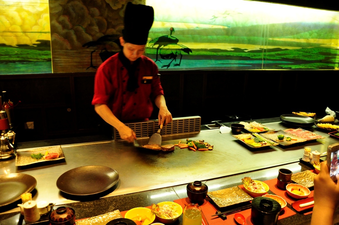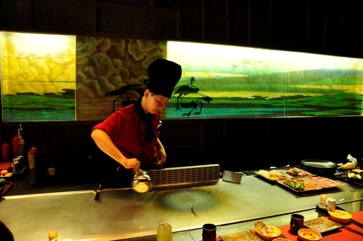| Ngoài trình diễn, chế biến món ăn, các đầu bếp phong cách Teppan yaki còn phải biết đàn, hát để phục vụ theo yêu cầu của khách. |