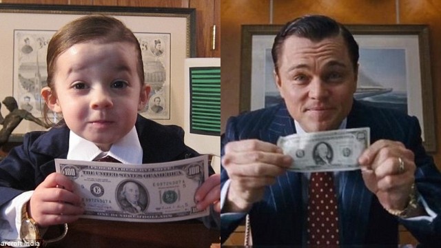 | Sophia Storino, 3 tuổi sống tại Chicago vừa giới thiệu bộ ảnh hóa thân thành nhiều nhân vật nổi tiếng trong các phim được đề cử giải Oscar 2014 khiến dân mạng thích thú. Ngoài diễn xuất nhập vai của Sophia, cả gia đình cô bé gồm mẹ, bố và em trai cũng là người hậu thuẫn đắc lực giúp bộ ảnh hoàn thành. Đây là hình ảnh cô bé hóa thân thành diễn viên Leonardo Di Caprio trong The Wolf of Wall Street. |