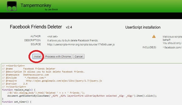 Xóa bạn bè trong Facebook hàng loạt: Bấm Install. |