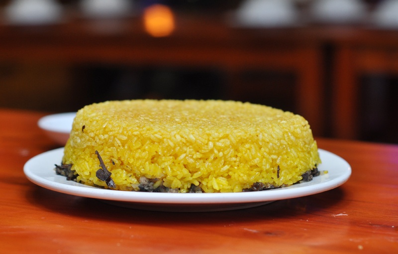 | Đĩa xôi ốc trông khá hấp dẫn. |