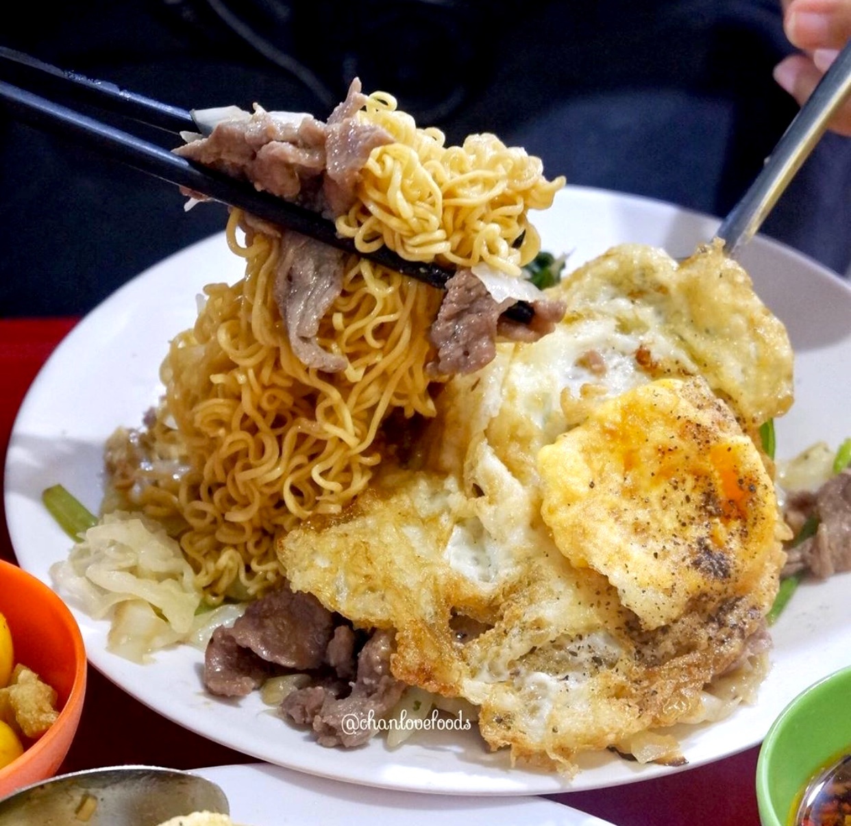Mì, nui xào: Khu vực ga Sài Gòn cũng là tọa độ hút tín đồ ăn đêm. Bạn có thể tìm thưởng thức món mì hay nui xào ở quán đường Nguyễn Thông, quận 3. Phần ăn nổi bật với nhân trứng non, thịt bò. Tỏi phi, cải, nước tương, sa tế cũng được kết hợp làm tăng hương vị. Mức giá từ 40.000 đồng. Ảnh: Chanlovefoods. |