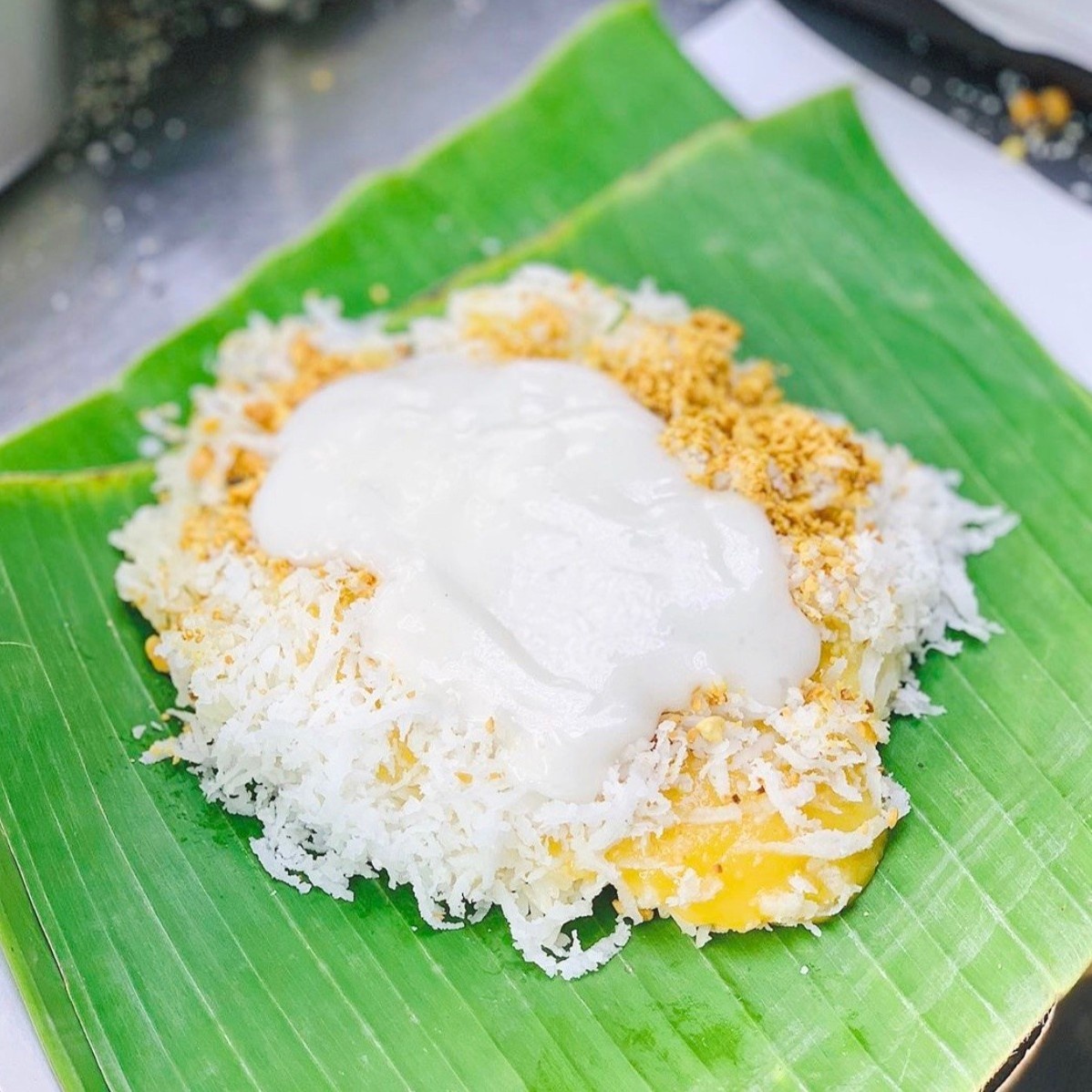 Xôi cadé: Đặc trưng của món xôi này là lớp cadé vàng ươm phủ lên lớp xôi dẻo thơm, nóng hổi. Cadé là hỗn hợp được tạo nên từ sự pha trộn giữa các nguyên liệu như trứng, đường, nước cốt dừa, bột mì theo một công thức riêng. Ảnh: Mitsfoody. |