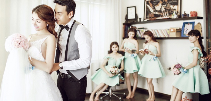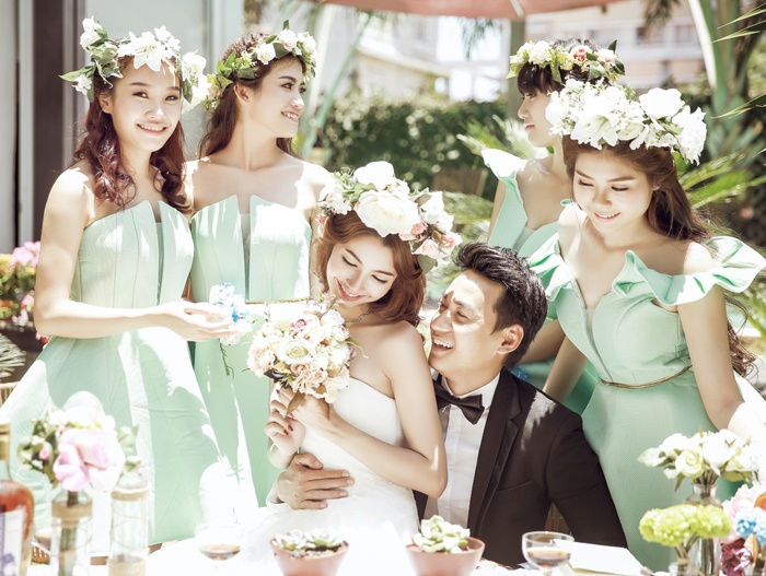 | "Xu hướng ảnh cưới của năm 2015 là những người thân của cặp đôi sẽ cùng xuất hiện tạo nên những khoảnh khắc vui, ý nghĩa và đáng nhớ. Đặc biệt, những cô phù dâu đáng yêu do bạn bè hóa thân khi xuất hiện bên cạnh cô dâu sẽ giúp cho bộ ảnh thêm lung linh, sinh động”, anh chia sẻ thêm. |