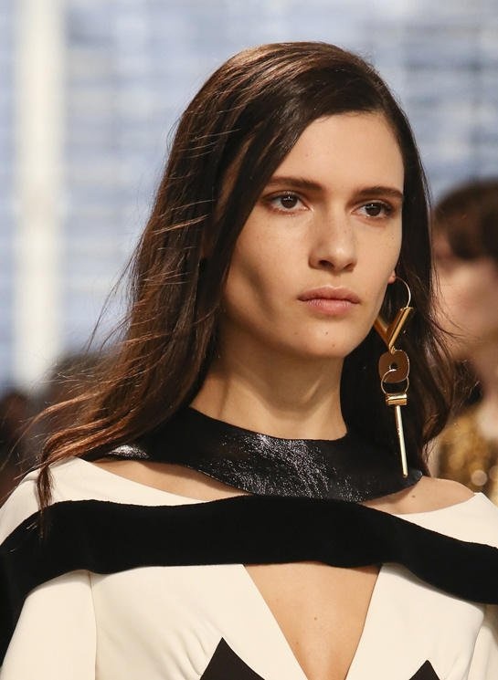 | Hoa tai hình chìa khóa trong show Louis Vuitton thu đông 2014. |