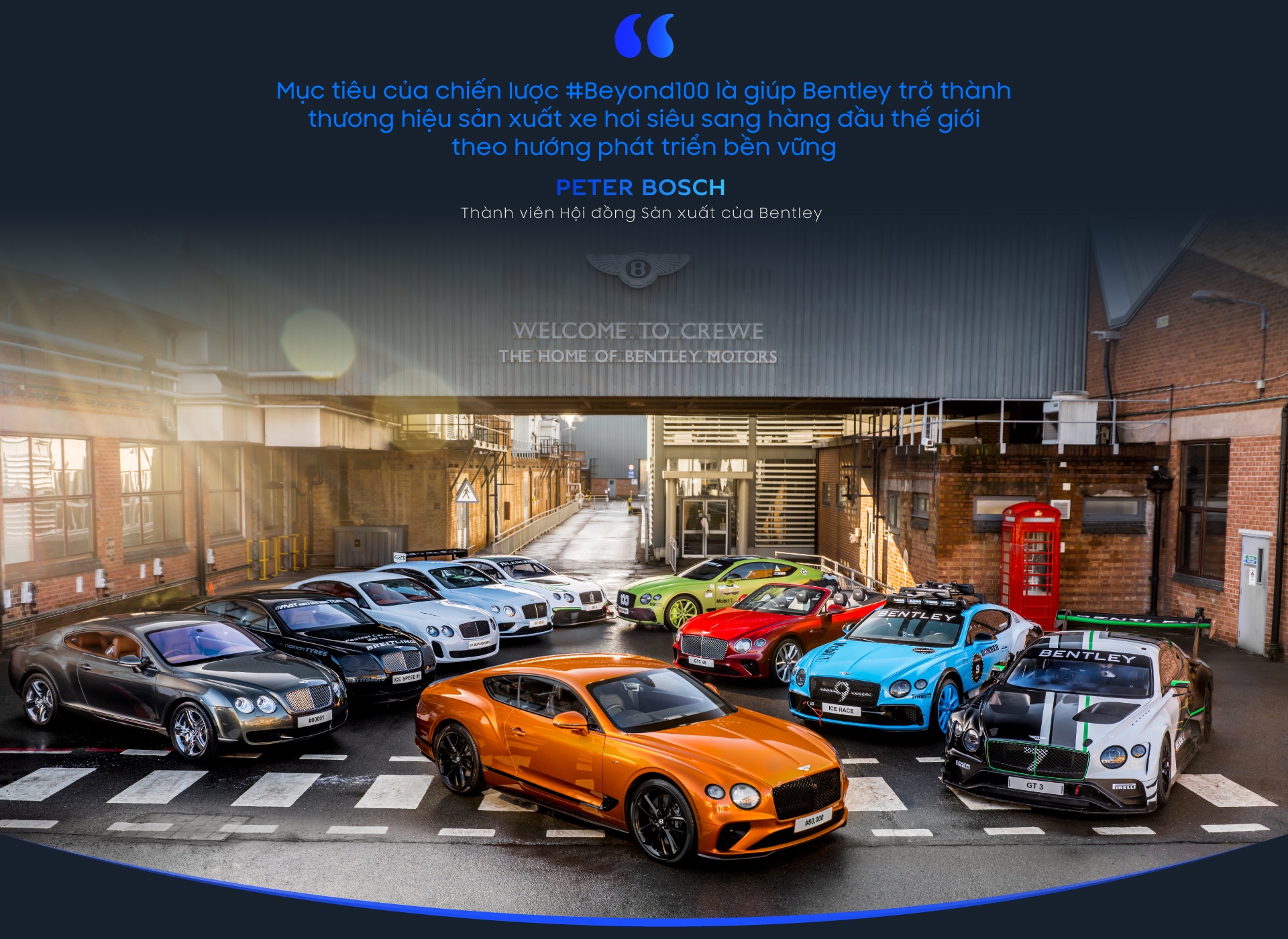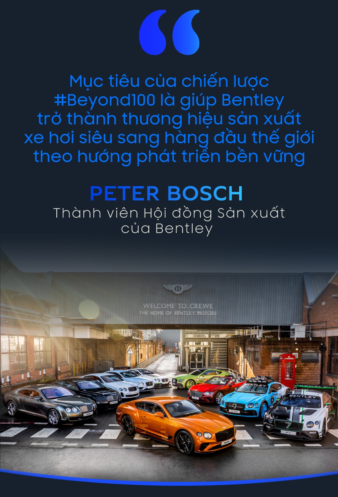 Peter Bosch giải thích: “Trọng tâm trong chiến lược #Beyond100 là đảm bảo Bentley trở thành thương hiệu sản xuất xe hơi siêu sang hàng đầu thế giới theo hướng phát triển bền vững. Những con số đáng khích lệ mới nhất cho thấy chiến lược sản xuất không ngừng tập trung vào tiêu chí giảm thiểu chất thải, lượng nước và mức sử dụng điện đang mang lại quả ngọt. Đó là sự thay đổi theo hướng tích cực sau mỗi năm”.