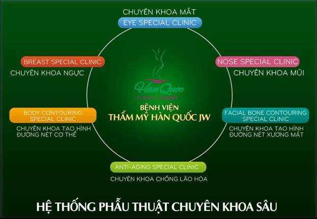 Hoạt động hoàn toàn theo quy chuẩn chất lượng được kiểm soát bởi JW Hàn, Bệnh viện Thẩm mỹ Hàn Quốc JW cũng có những chuyên khoa sâu như: