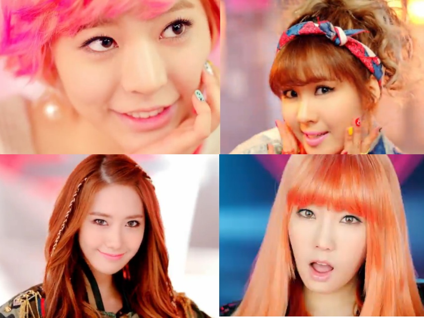 | Màu tóc không thể sáng hơn của các cô gái trong Girl’s Generation, đặc biệt là đôi mắt cũng được chăm chút long lanh. |