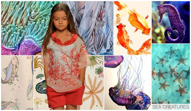 Họa tiết sinh vật biển đầy màu sắc cũng là một gợi ý hay dành cho các bé gái. Họa tiết này khá phổ biến vì dễ kết hợp và phù hợp với nhiều lứa tuổi, trong đó các họa tiết nổi bật là hình sứa, cá ngựa, san hô và cá chép.