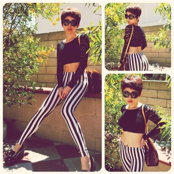 | Tóc Tiên quyến rũ khi diện chiếc quần kẻ sọc và croptop ren. |