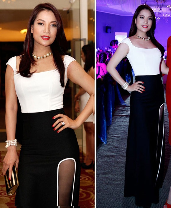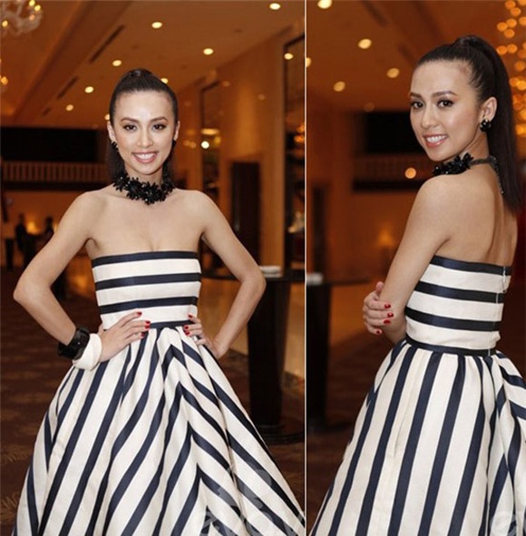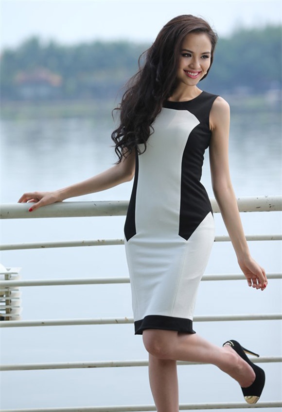 | Hoa hậu Diễm Hương nữ tính trong những thiết kế váy hai gam màu đen trắng. |