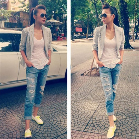 Kẻ sọc có từ rất lâu nhưng trong các mùa năm nay, xu hướng thời trang này vẫn được nhiều ngôi sao Việt sử dụng.