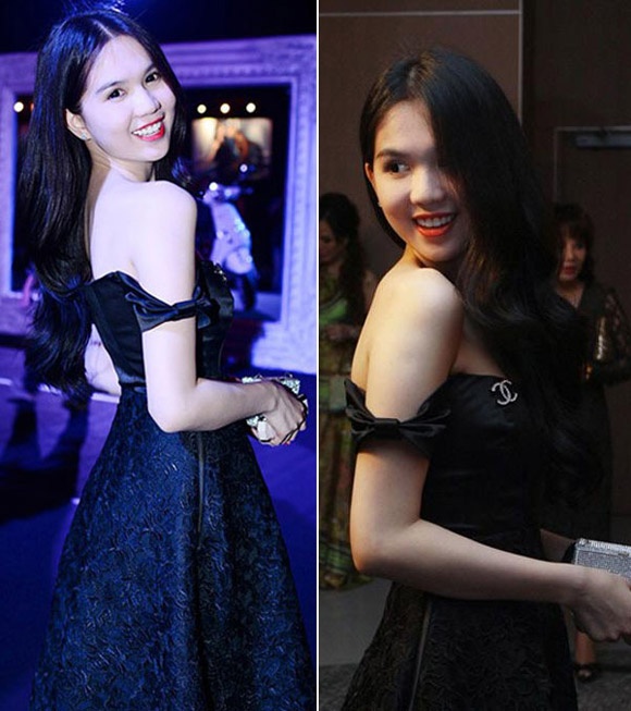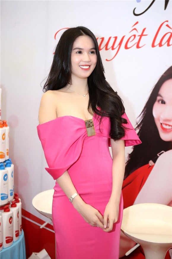 | "Nữ hoàng nội y" Ngọc Trinh nhiều lần diện đầm trễ vai, tuy nhiên, lần nào cô cũng làm người hâm mộ phải ngẩn ngơ vì vẻ đẹp thiên thần, không tỳ vết. |